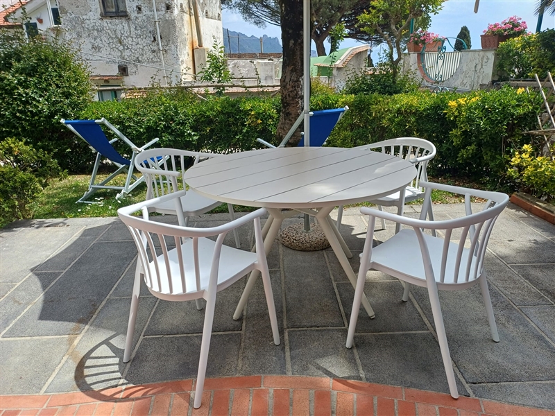Apartment Chopin is composed by one double bedroom, one twin bedroom, two bathrooms with shower, kitchen with dining area and small sofa, patio with garden view equipped with table and chairs.